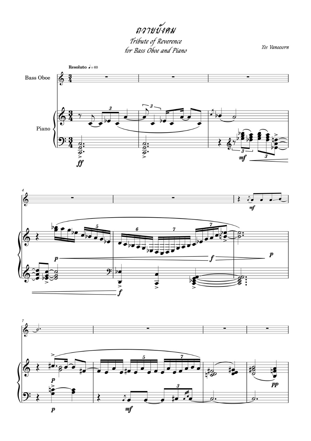 for bass oboe and piano